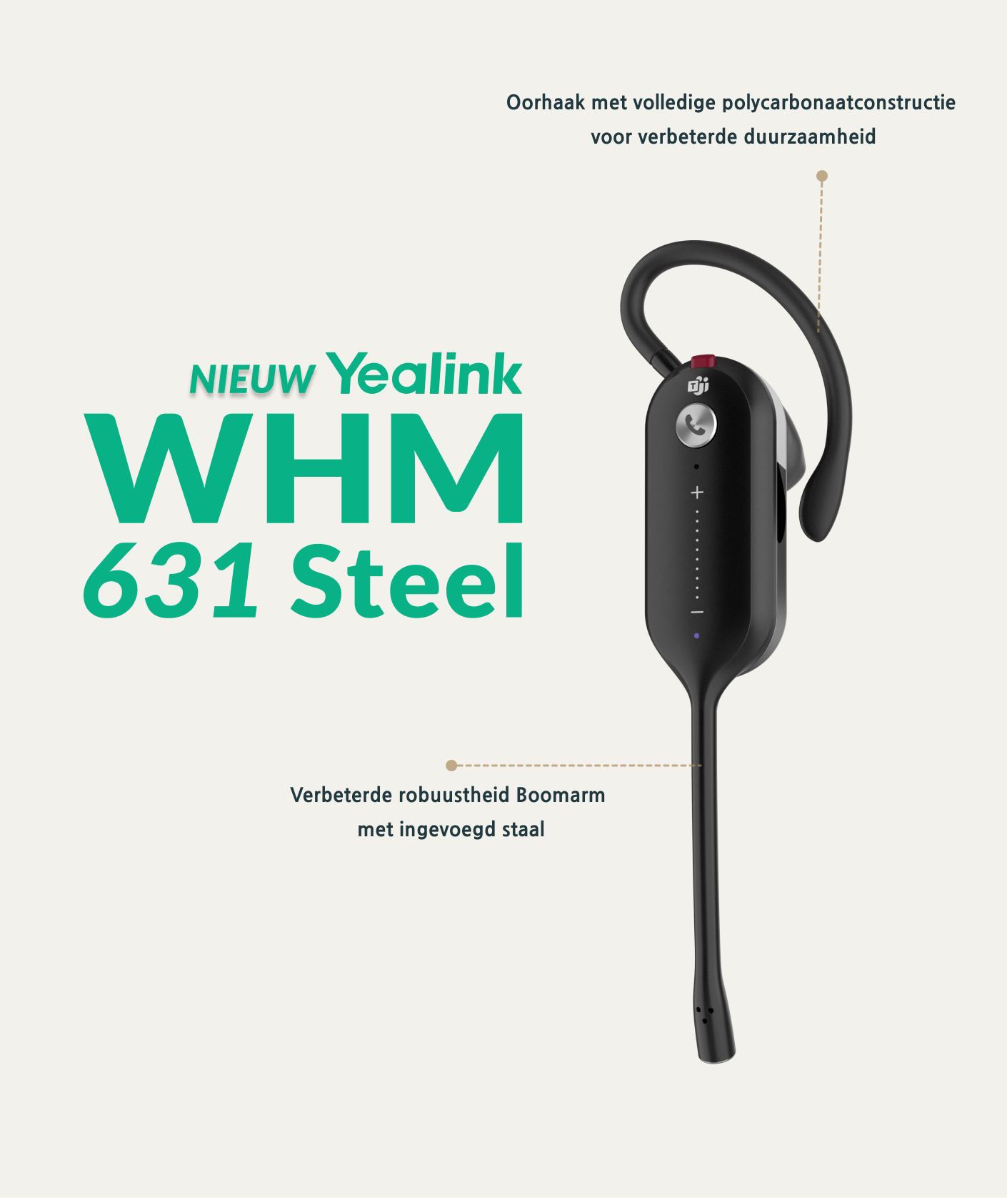 Maak kennis met de Yealink WHM631 Steel, de verbeterde versie van de beproefde Yealink WHM631 headset. Met een versterkte structuur om duurzaamheid en weerstand te garanderen, is de WHM631 Steel nu de meest robuuste headset op de retailmarkt. Ontworpen om het hoge tempo van het dagelijkse retailleven te weerstaan, combineert hij het uitzonderlijke comfort en de audiokwaliteit die u al kent met een nieuwe constructie die nog meer betrouwbaarheid en een lange levensduur biedt. De Yealink WHM631 Steel legt de lat hoger voor prestaties en betrouwbaarheid en is de ideale keuze voor iedereen die zich geen compromissen kan veroorloven op het gebied van uitmuntende service.